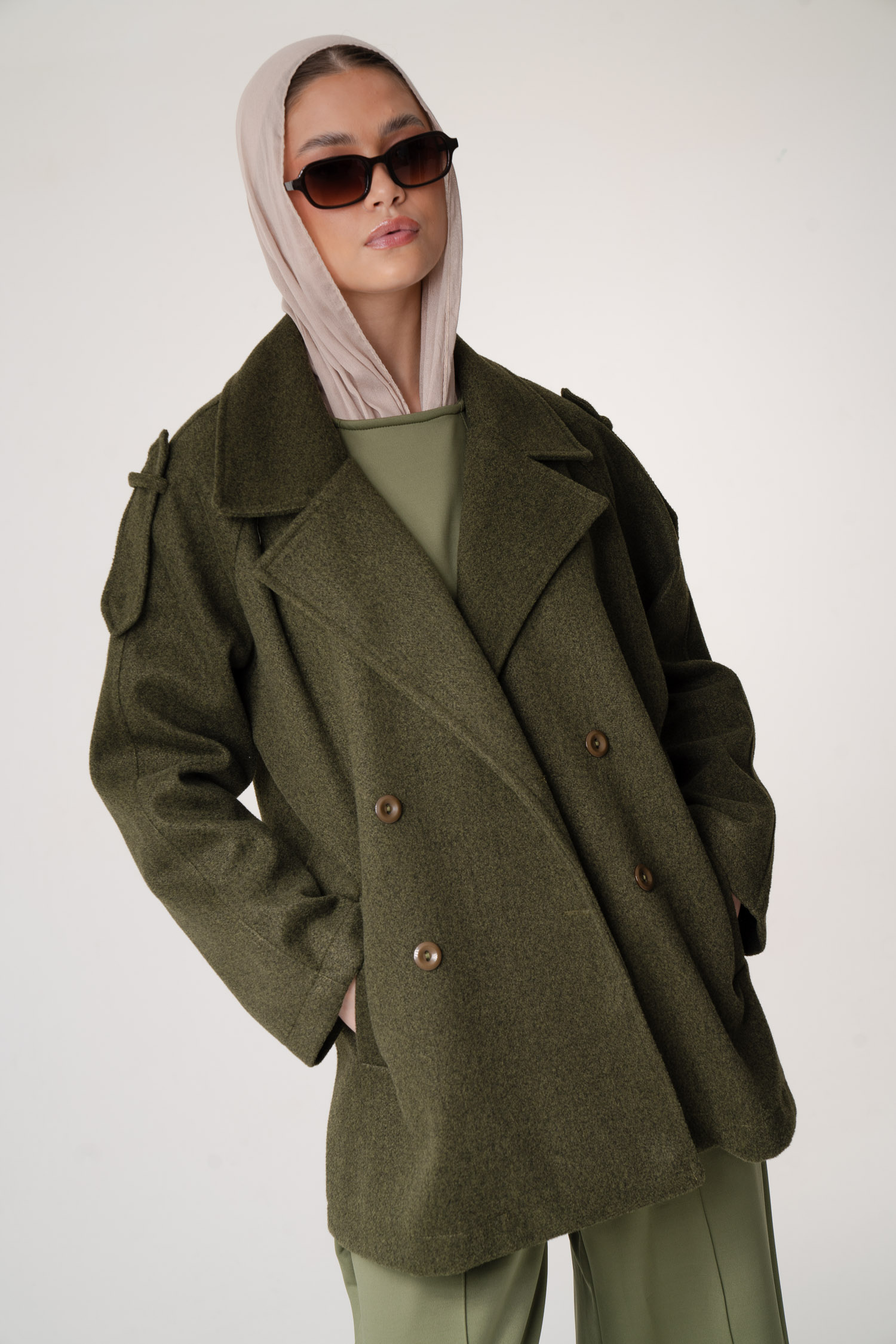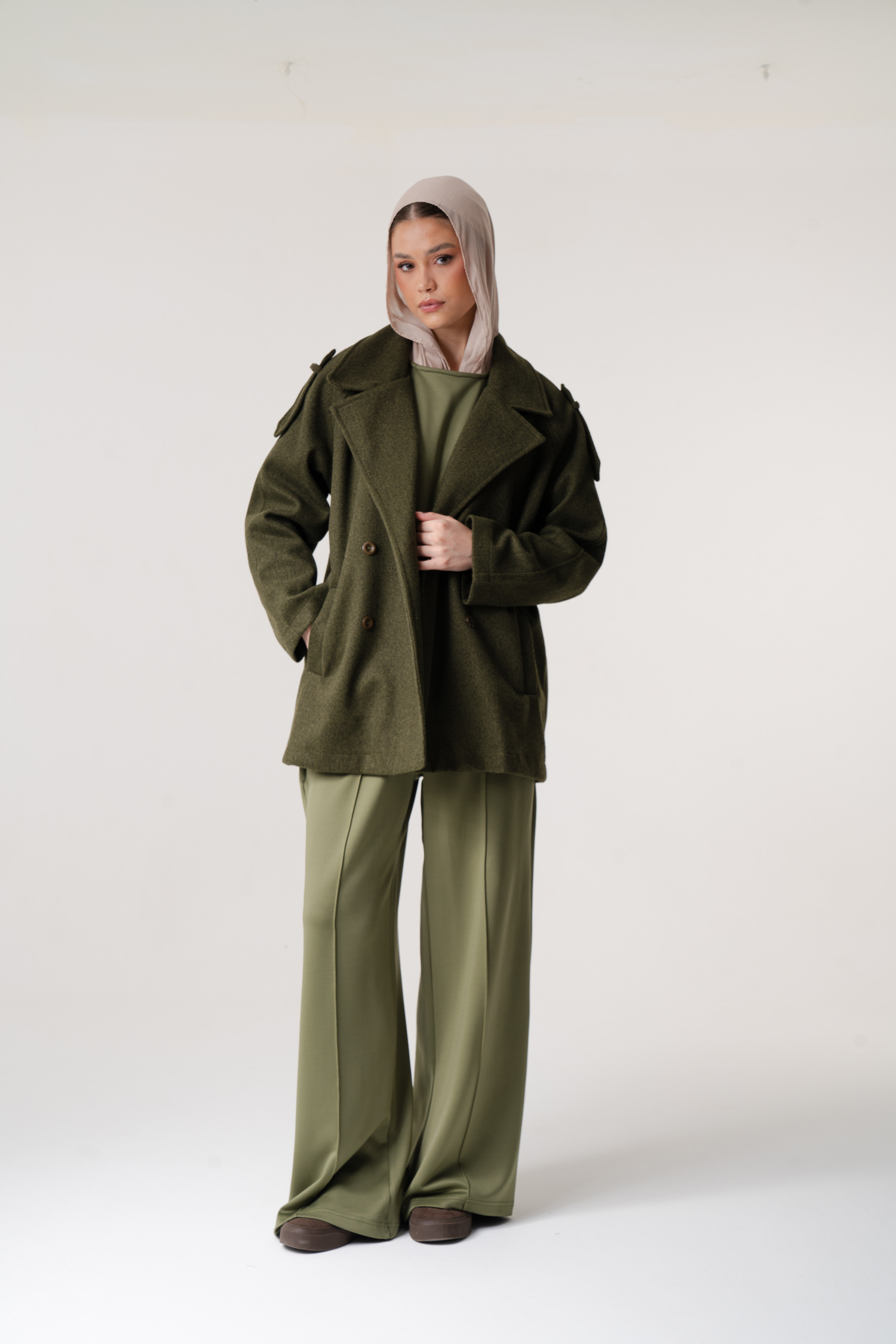 Long wool jacket with 2 pockets